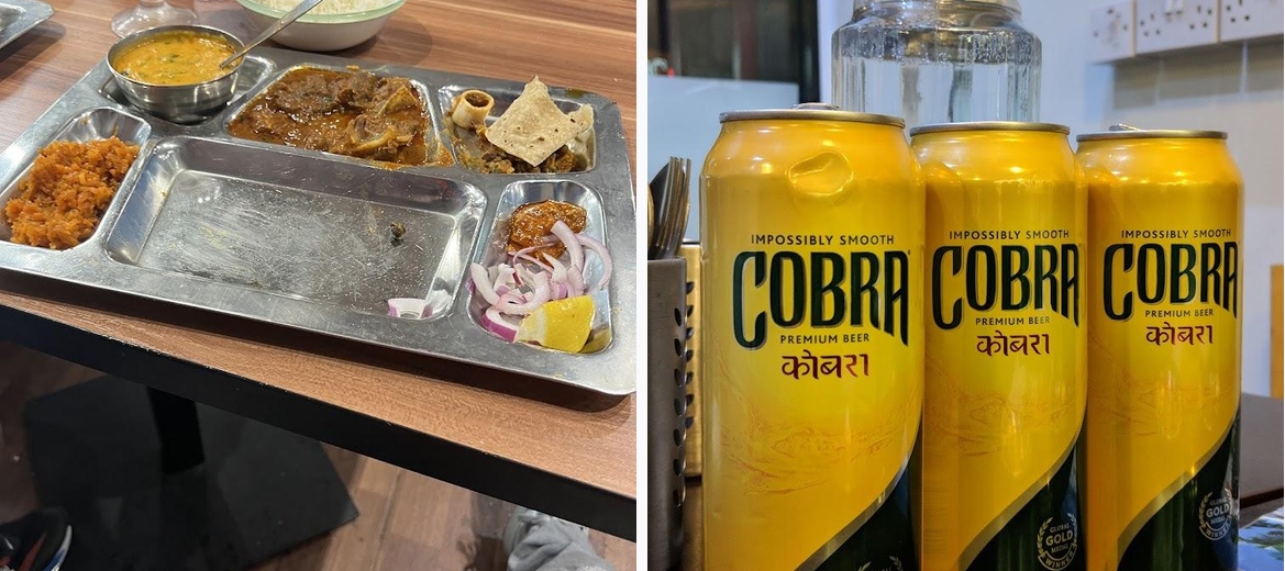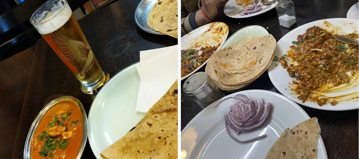 Typical indian curry's and specially mutton thali is perfect. All the indian chats and chaknas served here. Quick Asian style Chinese is available too. Value for money. Best Indian snacks and beers.